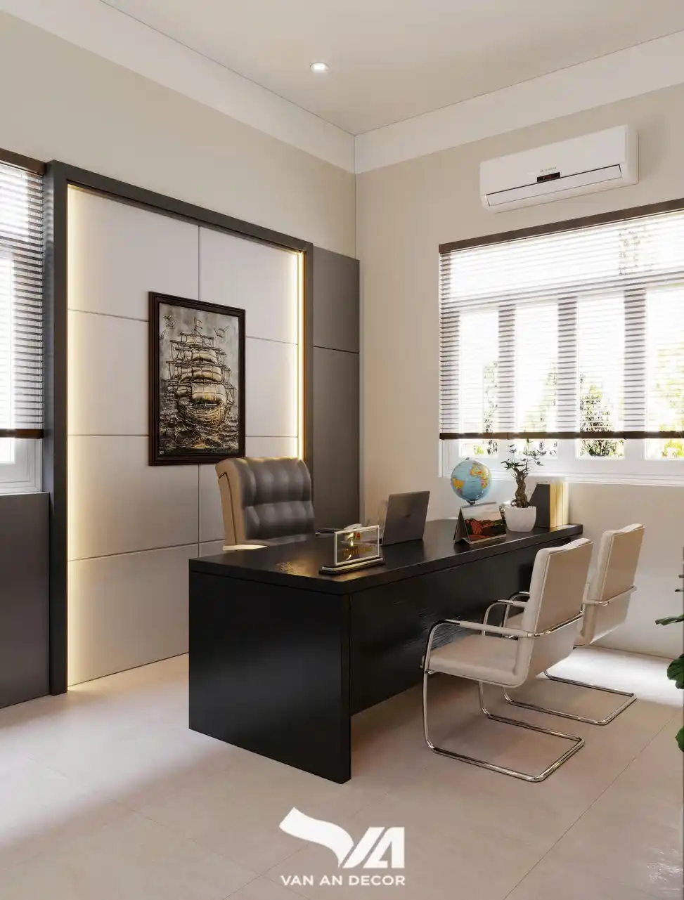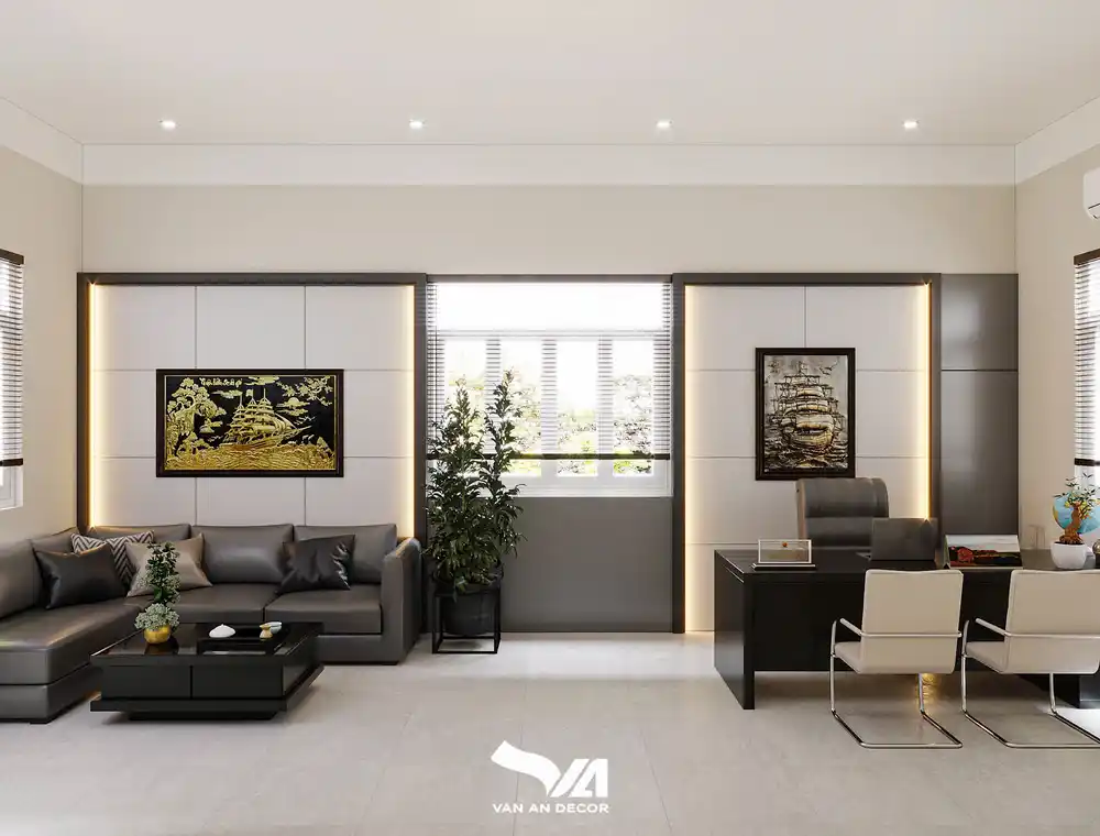 Dưới đây là những hình ảnh về dự án thiết kế và thi công văn phòng theo phong cách hiện đại tại Bình Dương. Các bạn hãy cùng Vạn An Decor tìm hiểu về công trình này nhé.